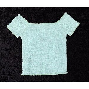 NWT BB Dakota by Steve Madden Light Green Cotton Smocked Off the Shoulder Top/Sz