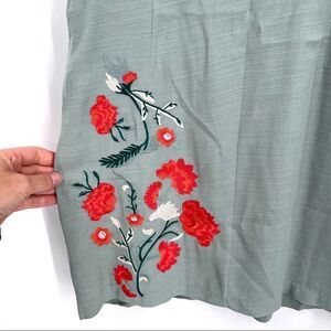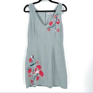 Light seafoam green dress with floral embroidery. Side hidden zip. V neck. Size US 8