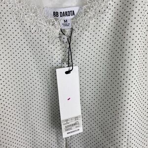 NWT BB Dakota White Lace with Black Dots Blouse- Size M