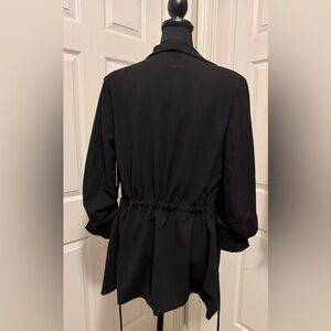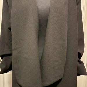 This elegant black jacket is perfect for any occasion. Its sleek design offers a sophisticated look, making it a versatile addition to your wardrobe.