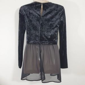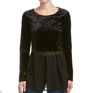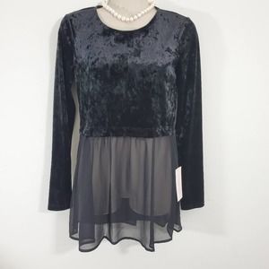NWT BCBG | BCBGENERATION BLACK VELVET CONTRAST HEM SHEER BLOUSE WOMEN'S XXS