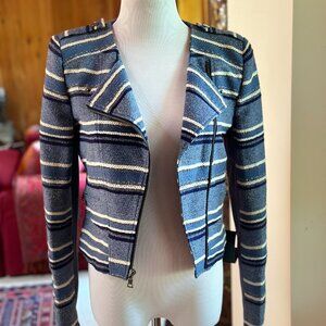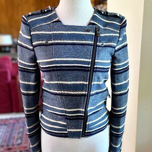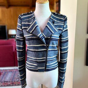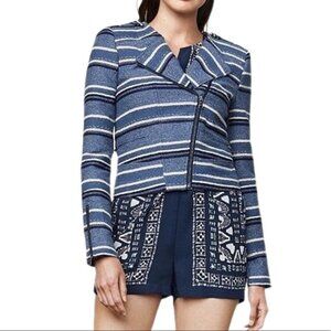 NWT - BCBG MAX AZRIA Novak Striped Blue Tweed Zip Moto Biker Jacket – XXS