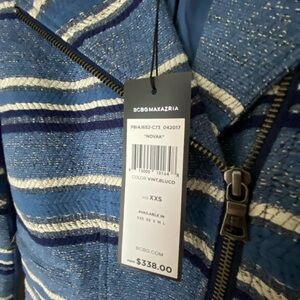 NWT BCBG MAXAZRIA Novak Striped Textured Moto Blazer Jacket Cotton Blend Sz XXS