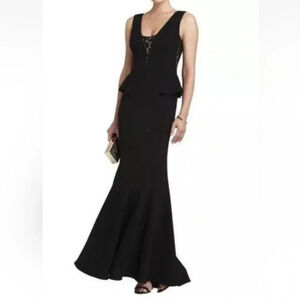 NWT BCBG MAXAZRIA “Silvia” Sleeveless Peplum Black Elegant Maxi Dress Sz 0