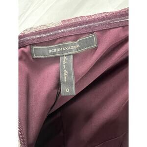 NWT BCBG MAXAZRIA Trailing Foliage One-Shoulder Gown size 0. Color DEEP PORT. One-shoulder neckline. Long puff sleeve. Concealed back zip with hook closure. Lined. Metallic stitch detail. About 61" from shoulder to hem.