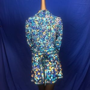 Beautiful blue spotted stretchy collared mini dress. Small. New with tags. BCBG never worn!