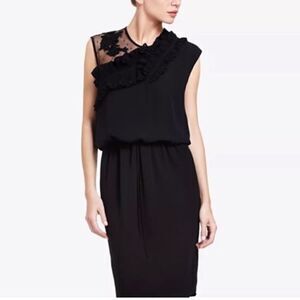 NWT BCBG MaxAzria Angeline black crepe neckline dress drawstring waist siz large