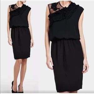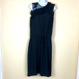 Angeline drawstring dress size large. Black crepe chiffon detailed neckline. Contemporary fit. Sleeveless. Chiffon woven. Fully lined. Hook-and-eye closure. New with tags.