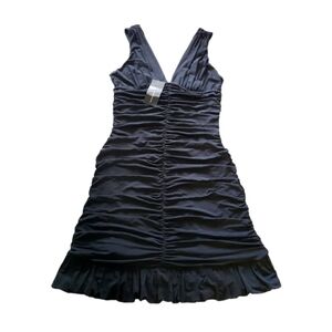 NWT BCBG Maxazria Black Empire Ruched Mini Dress Sleeveless V, Size M