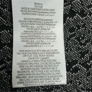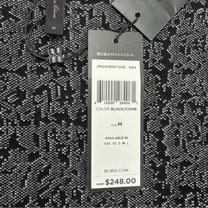 The NWT BCBG Maxazria Open Front Belted Cardigan in Women's size Medium features a stylish design that combines black and white colors. This long-sleeved sweater with a collared neckline and raglan sleeves is made of a comfortable knit fabric blend of nylon and rayon. The belted front adds a trendy accent to the cardigan, which is perfect for adding a pop of color and a touch of bohemian flair to any outfit. Perfect for a classic yet colorful look, this BCBGMAXAZRIA cardigan is a versatile and chic addition to any wardrobe.