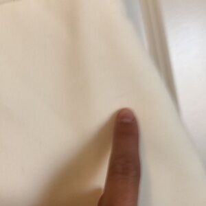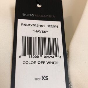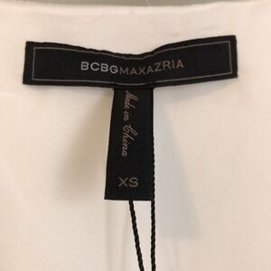 This is a new with tags BCBG Maxazria off-white peplum blouse with cut outs. It is a size XS. It has a couple small stains, shown in pictures.