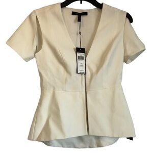 NWT BCBG Maxazria Womens Peplum Top Sz XS Off White Cut outs Zip Up Casual Flaw