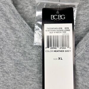 NWT BCBG Paris Button Down V-Neck Long Sleeve Tee XL Heather Gray Soft