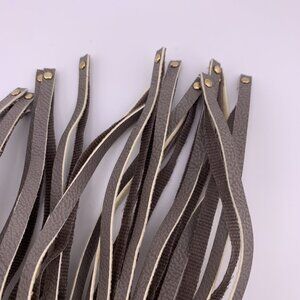 This stylish and versatile BCBG Paris bag is brand new with the original tags still attached. The bag features a chic taupe color, made from high-quality faux leather with a pebbled texture. The front flap is adorned with statement fringe details, adding a touch of bohemian flair. It can be worn as a clutch or a crossbody bag with its detachable gold-tone chain strap. The foldover flap has a magnetic closure, and the interior is lined with a zipper pocket and two slip pockets to keep your essentials organized.