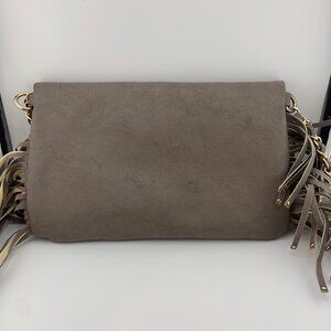 NWT BCBG Paris Taupe Fringe Foldover Crossbody Bag