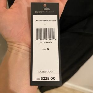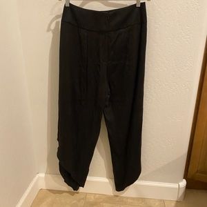 NWT BCBG size S, black wide-leg, tulip hem pants. Back zipper with hook and eye closure. Back seams in center of each pant leg. Material is 100% lyocell and machine washable.