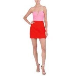 The pink and red colorblocking creates a visually striking design and adds definition to the silhouette.