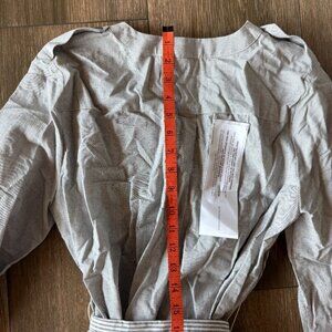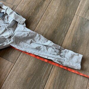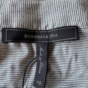 NWT BCBG grey combo pinstripe midi, curved hem dress size XS