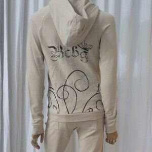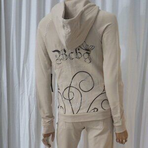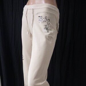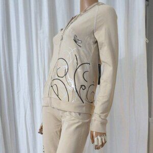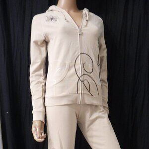 NWT BCBG sz SM LG XL 95% cotton BEIGE & BROWN STUDDED 2 PIECE TRACKSUIT