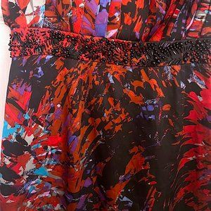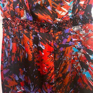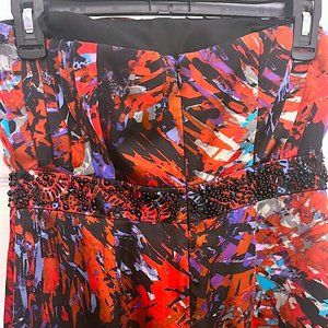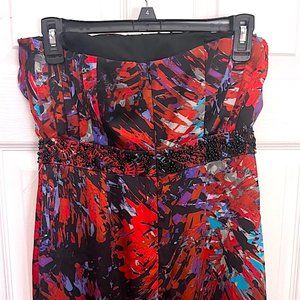 NWT BCBGENERATION ROUGE RED BLACK BLUE PURPLE MULTICOLOR STRAPLESS DRESS WITH BEADED EMPIRE WAIST SIZE 6