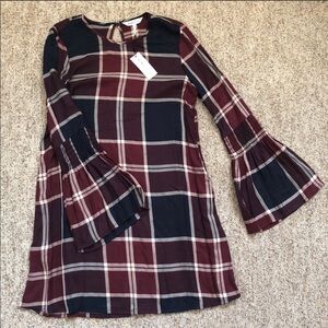 NWT BCBGENERATION plaid dress with bell sleeves - Sz S