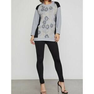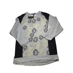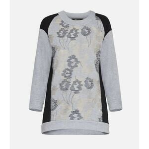 $228 NWT BCBGMAXAZRIA Embroidered Tunic Sweatshirt French Terry Medium Heather Gray Abstract Floral