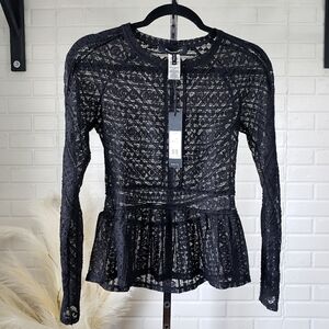 NWT BCBGMAXAZRIA Knit Lace Peplum Top size Xtra Small Black Long Sleeve