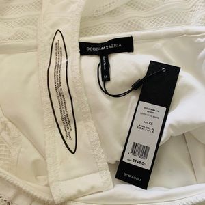 NWT BCBGMAXAZRIA Ruffled Striped-Lace Bodysuit
