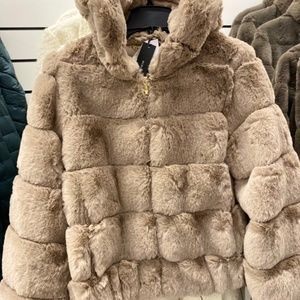 NWT BCBGMAXAZRIA soft Faux Fur hooded Jacket