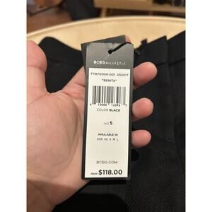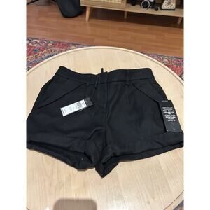 The NWT BCBGMaxAzria Benita Shorts in black are a stylish addition to any woman's wardrobe. These mid-rise shorts feature a zipper closure and belt loops for a comfortable and secure fit. The short length and flat front design make them perfect for styling with your favorite top for a casual or dressy look. With pockets adding a practical touch, these shorts are both fashionable and functional for everyday wear.