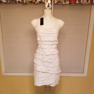 NWT BCBGMaxAzria DI Layered Slvless White Dress L
