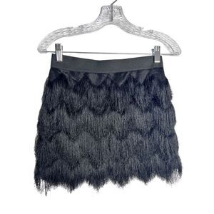 NWT BCBG MaxAzria “Modie” Fringe Black Mini Skirt sz xxs