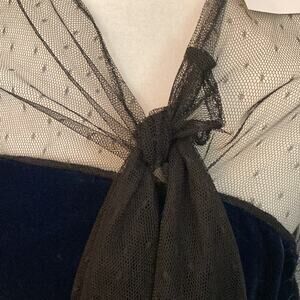 π NWT BCBGMaxAzria Navy Velvet & Black Lace Sleeve Top β Sz Small π€