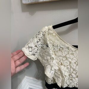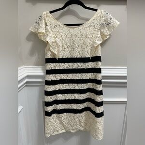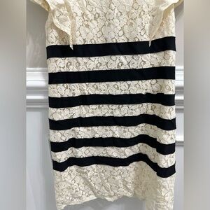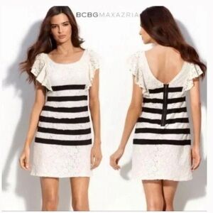 NWT BCBGMaxAzria Renata Black Striped & 💯 Silk Ivory Laced Dress size 6