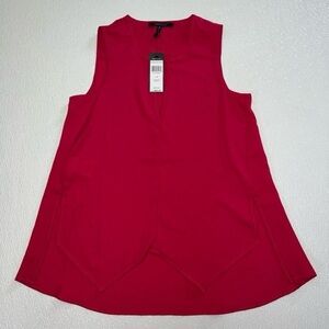 NWT BCBGMaxAzria Sangria Red Keyhole Womens Sleeveless Satin Georgette Top S