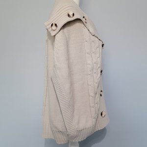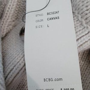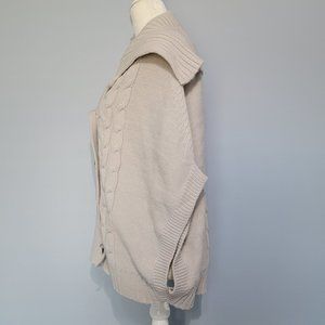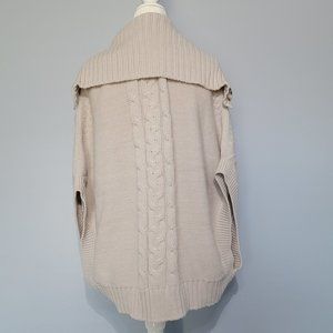 NWT BCBGMaxAzria Slouchy Sweater, Size Large, Measurements in photos. Cream color button slouchy chunky sweater sleeveless, poncho style