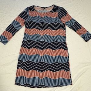 Chic teal and black dress with 3/4 long sleeves. Perfect for stylish outings.