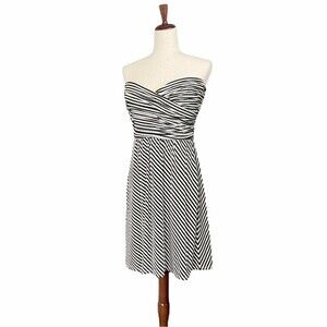 NWT BCBGMaxAzria Striped Strapless Fit & Flare Dress Black & White Size Large