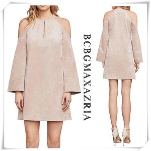 NWT. BCBGMaxAzria Laguna Faux-Suede Cold-Shoulder Long Sleeve Shift Dress.
