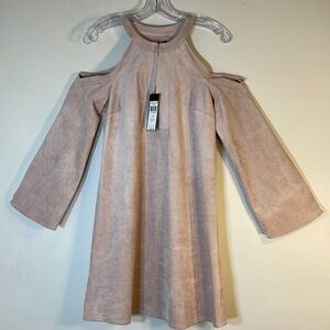 NWT. BCBGMaxAzria XS Laguna Faux-Suede Cold-Shoulder Long Sleeve Shift Dress.