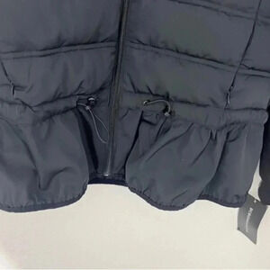 NWT. BCBGMaxazria Black Active Zip Jacket. Zip front closure, stretch adjustable waist, hood detail, front pockets, and moisture wicking fabric. Size large.