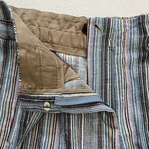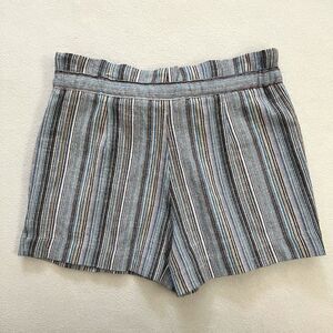 Striped paper bag style shorts that are high-waisted with a front zipper. An adjustable belt cinches the waist of this classic short crafted from a multi-stripe. Side pockets 78%Cotton /13%:Polyester/6%Rayon/2%Nylon/1% Acrylic