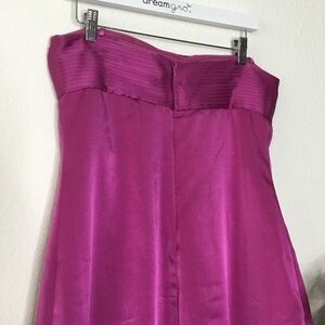 A brand new strapless cocktail dress. Bust has a folded design while the bottom has a wide sewn band design. Zipper on back and built in corset top.
