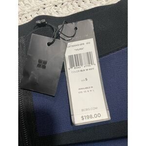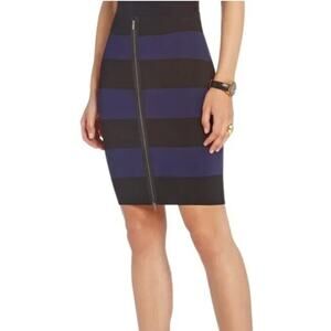 NWT BCBG MaxAzria Vilma Bodycon Skirt Women's Size Small Black Navy MSRP$198 LRT3D543 Bandage Front Zipper Striped