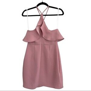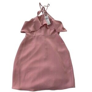 NWT BCBGeneration Asymmetrical Ruffle Halter Mini Dress Pink Rose Size 2