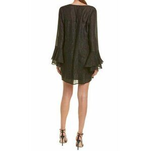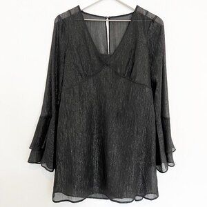 NWT BCBGeneration Bell Sleeve Sheer Metallic Long Sleeve Mini Dress Black New XS