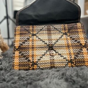 Stylish NWT BCBGeneration vintage inspired woven clutch features a chic perfect for fall colors in a brown and orange design. Perfect for adding a touch of elegance to any outfit. MSRP is $98. Comes from a smoke free home!