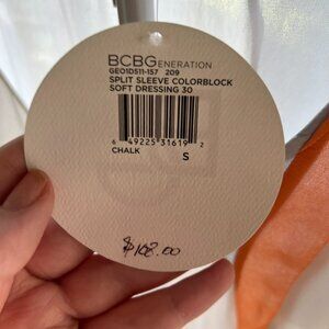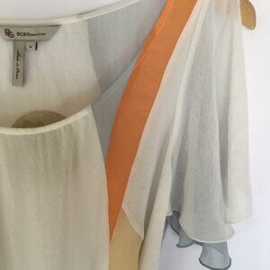 NWT BCBGeneration Colorblock Blouse S Split Sleeve Tie Accent Orange White Gray