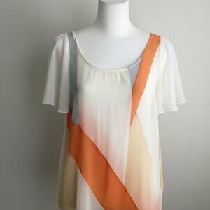 BCBGeneration, Colorblock Blouse, Orange, White, Gray, Split Sleeve Top, Tie Waist Blouse, Relaxed Fit, Pullover Top, New With Tags, NWT, Women's Blouse, Size Small, Summer Top, Spring Top, Casual Blouse, Everyday Wear, Comfortable, Stylish, Chic , Essential , Modern , Playful , Versatile, Breezy , Effortless