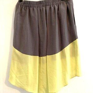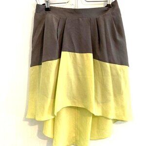 This NWT BCBG Generation yellow and gray colorblock skirt is adorable. A line with a flare and high low hem. Size medium. Polyester fabric and made in China. Perfect for office wear, going out, or travel.
